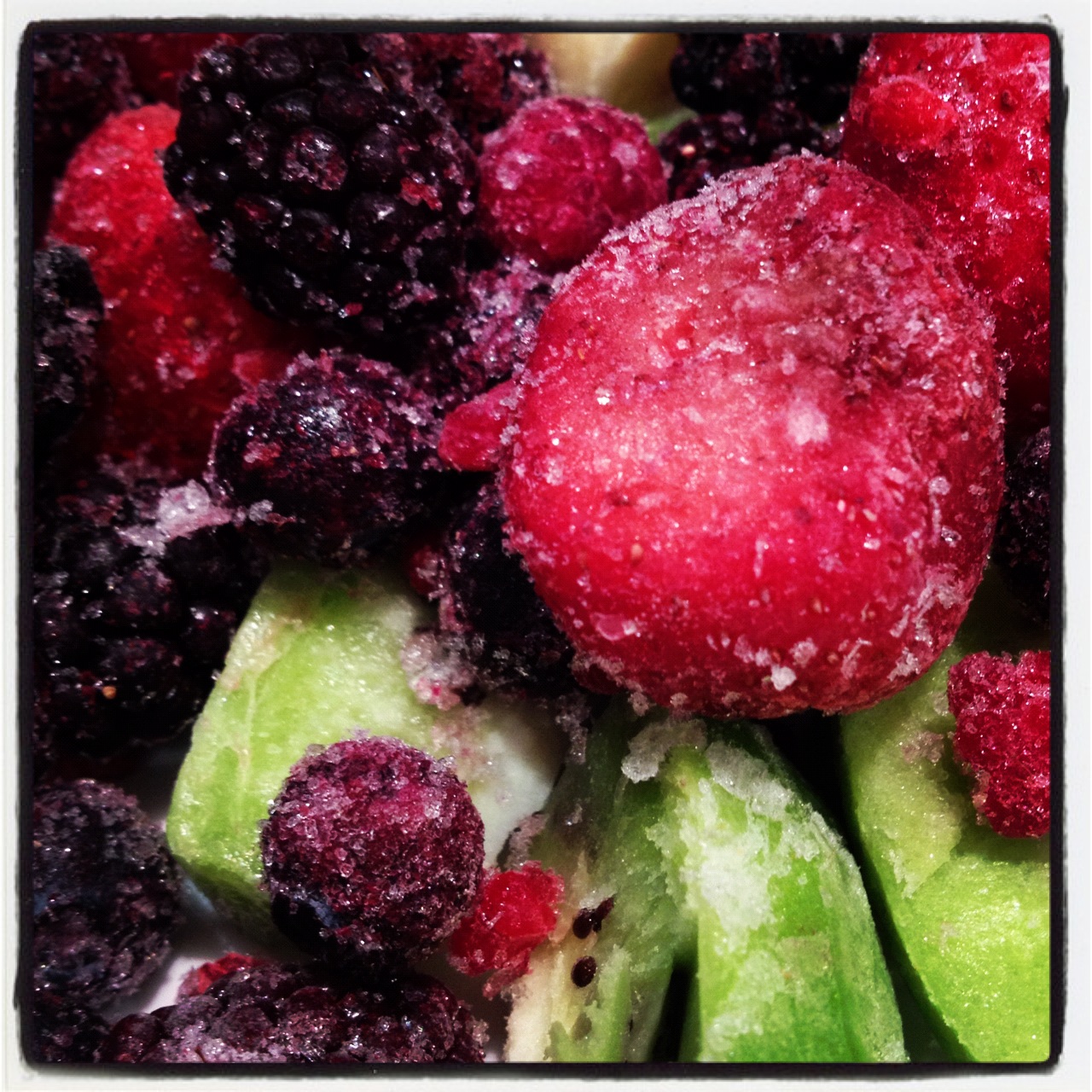 Now isn’t this a lovely picture? It’s frozen berries (if you haven’t already guessed) and some Kiwi Fruit.