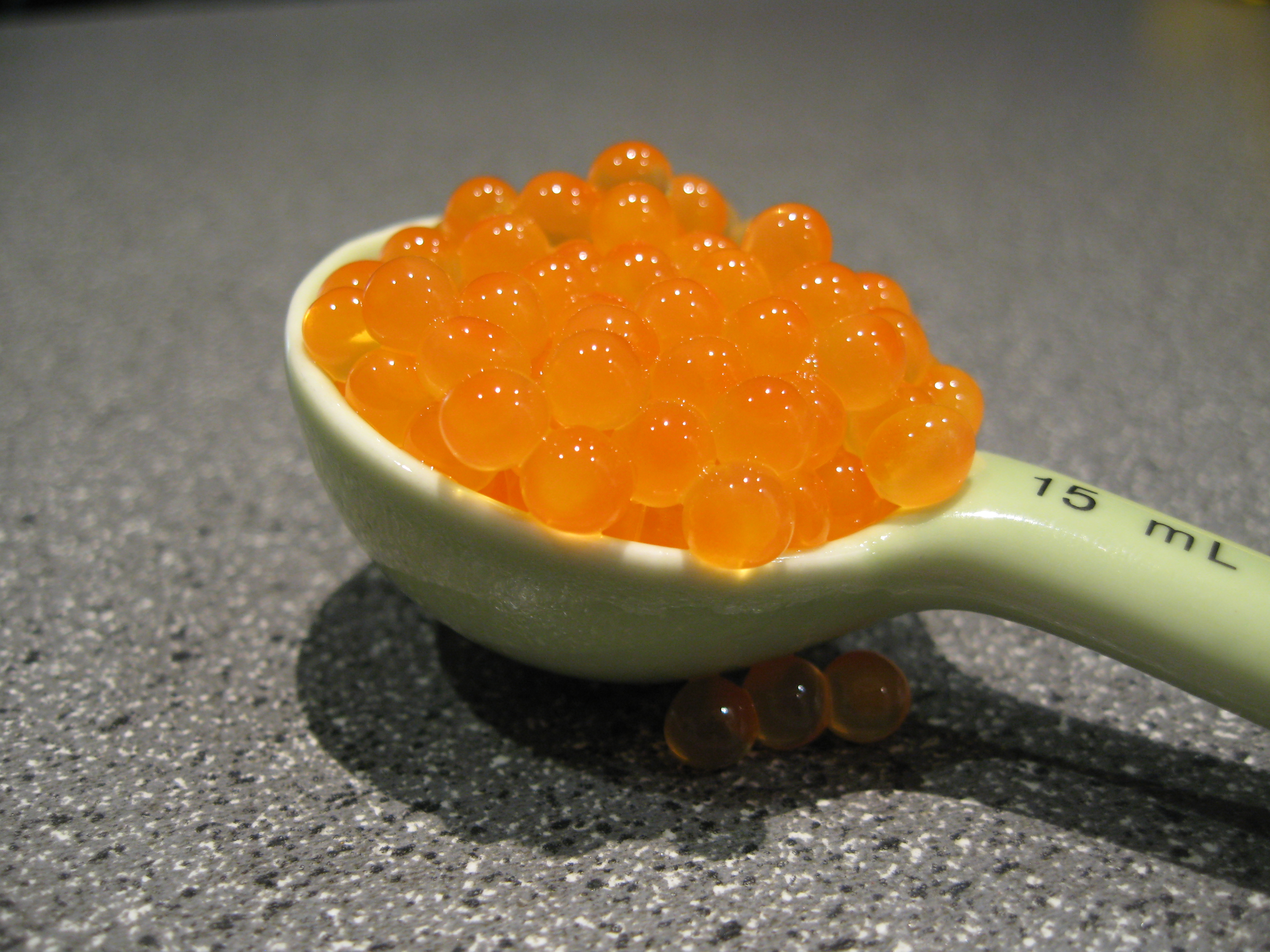 I was alarmed at quite how easy the whole process was to turn the eggs into caviar – the only remotely challenging part was removing each egg gently from the skein casing without popping them.