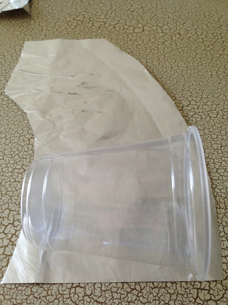 Do the same with the bottom but in this case, simple fold the overhanging foil flat on the bottom. Press the cup down on the table to make it even flatter so that the cup sits evenly and doesn’t have an opportunity to tip over.