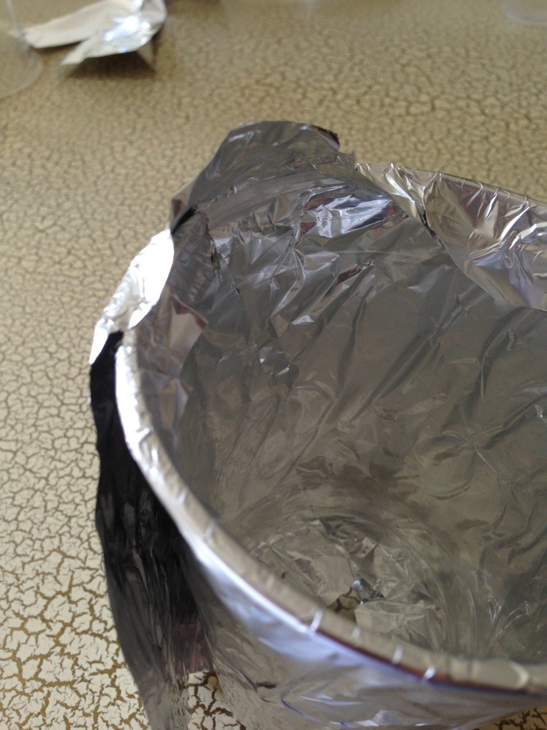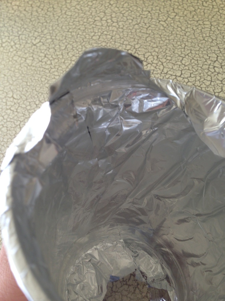 When the whole cup has been enveloped by the foil, simple fold the overhanging foil down into the cup cavity, locking it in place.