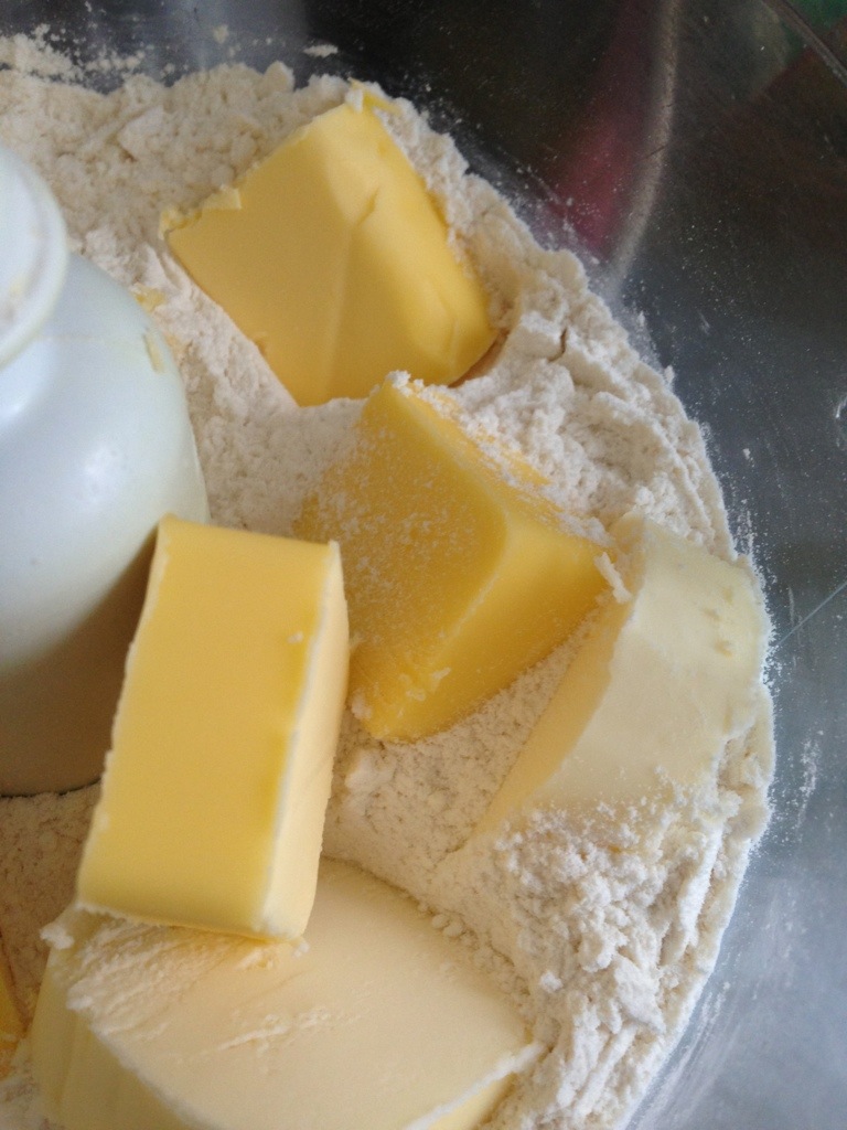 2. This recipe works in a food processor. If you want to do it by hand, you will need to cut the butter into smaller pieces and use your fingertips to rub the butter into the flour, until it becomes a fine crumbly mixture.