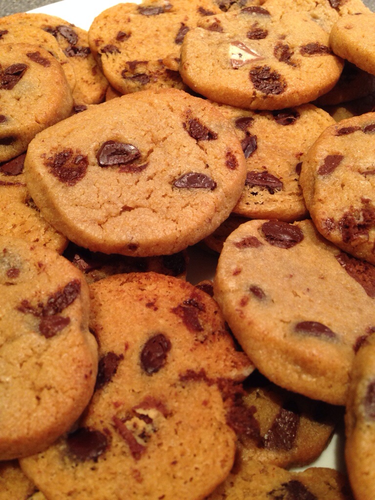 This is a variation on a basic but great Chocolate Chip Cookie recipe – however – I purposely called it ‘Leftover Chocolate Bit Cookies’ because I did in fact forage through my pantry for every last bit of opened & unfinished chocolaty anything that I could find and used it in place of the general ‘chocolate chips’ you would otherwise need. Granted, I only found enough of the leftover stuff to account for half the portion and I did in fact have to make up the rest of the weight with actual chocolate chips – but this was good too because I now know that in the pantry, I have exactly 145 grams of chocolate chips as spare – and nothing more.