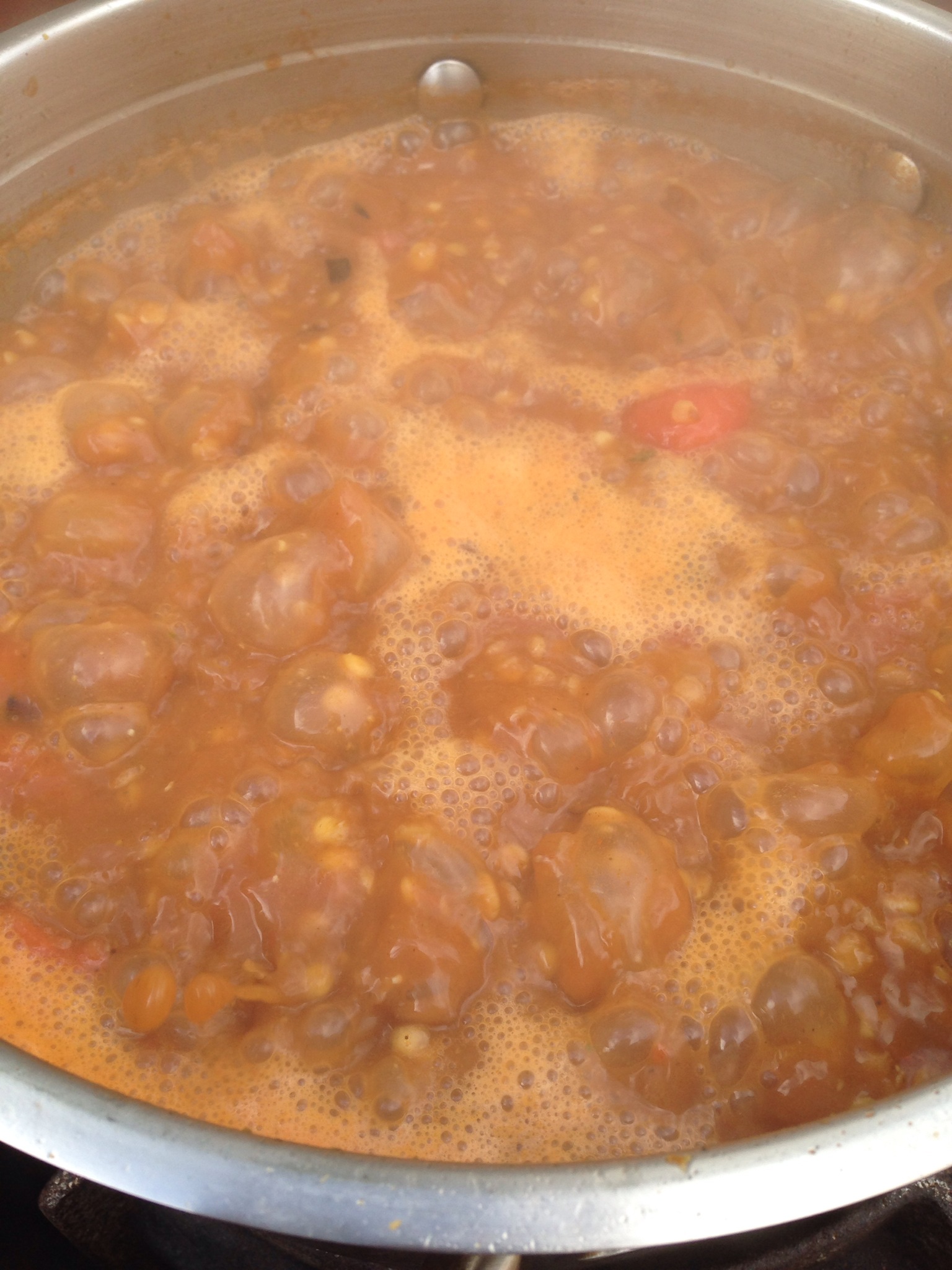 – When the dry spices have been incorporated, add the diced tomatoes. In this case I used them straight from the tin because we didn’t have any fresh ones at the time.