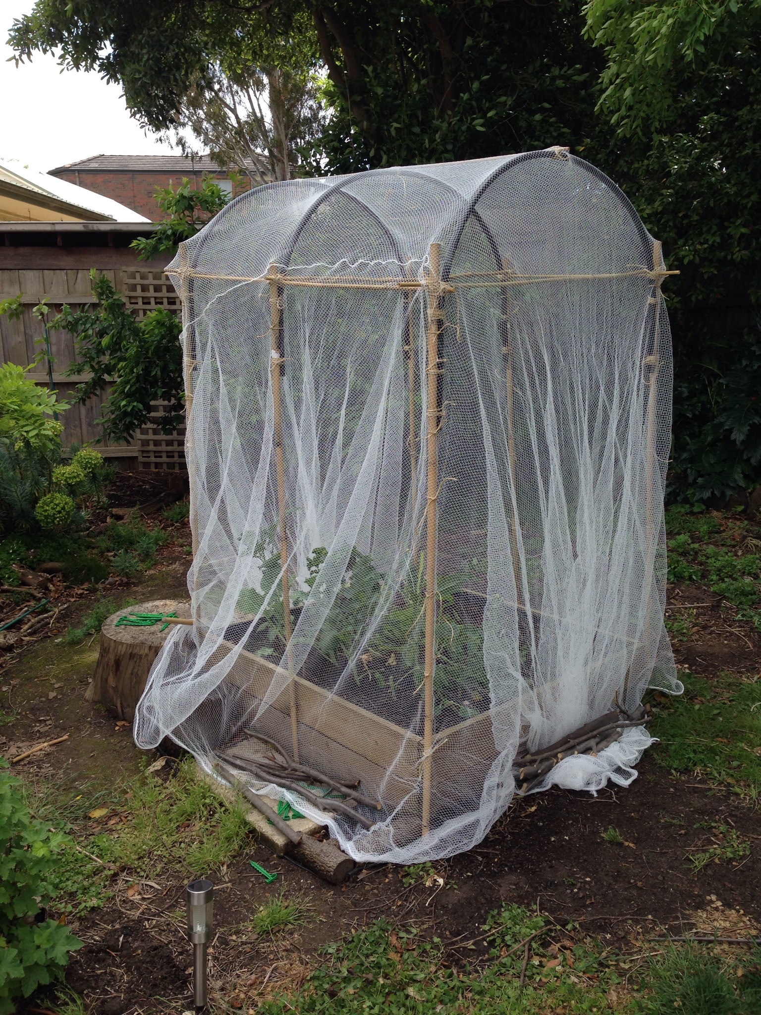I built this canopy over one of our veggie patches for the sole purpose of protecting my recovering brassica patch from the dreaded cabbage moth. It reminds me of a canopy bed – and aside from that DIY look, it really is just that – the ‘bed’ part however just happens to be a ‘garden bed’. I have built these before in the garden but this time I bought a netting with smaller holes so that the cabbage moth would have absolutely no way of squeezing into the space.